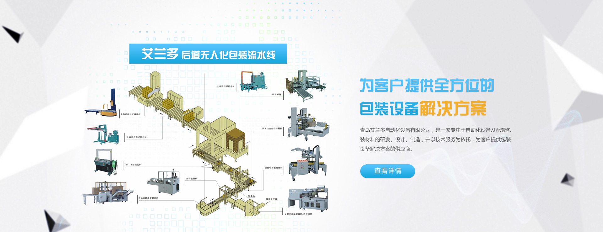 青島艾蘭多自動化設備有限公司,是一家專注于自動化設備的設計及包裝系統整合并以技術服務為依托,為客戶提供智能自動化包裝解決方案的供應商。